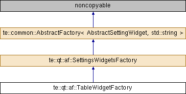 Implements te::common::AbstractFactory< AbstractSettingWidget, std::string >.
