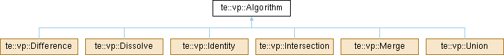 Implemented in te::vp::Difference, te::vp::Dissolve, te::vp::Identity, te::vp::Intersection, te::vp::Merge, and te::vp::Union.