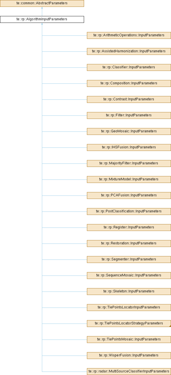 Reimplemented in te::rp::ArithmeticOperations::InputParameters, te::rp::AssistedHarmonization::InputParameters, te::rp::Classifier::InputParameters, te::rp::Composition::InputParameters, te::rp::Contrast::InputParameters, te::rp::Filter::InputParameters, te::rp::GeoMosaic::InputParameters, te::rp::IHSFusion::InputParameters, te::rp::MajorityFilter::InputParameters, te::rp::MixtureModel::InputParameters, te::rp::PCAFusion::InputParameters, te::rp::PostClassification::InputParameters, te::rp::radar::MultiSourceClassifierInputParameters, te::rp::Register::InputParameters, te::rp::Restoration::InputParameters, te::rp::Segmenter::InputParameters, te::rp::SequenceMosaic::InputParameters, te::rp::Skeleton::InputParameters, te::rp::TiePointsLocatorInputParameters, te::rp::TiePointsLocatorMoravecStrategy::Parameters, te::rp::TiePointsLocatorStrategyParameters, te::rp::TiePointsLocatorSURFStrategy::Parameters, te::rp::TiePointsMosaic::InputParameters, and te::rp::WisperFusion::InputParameters.