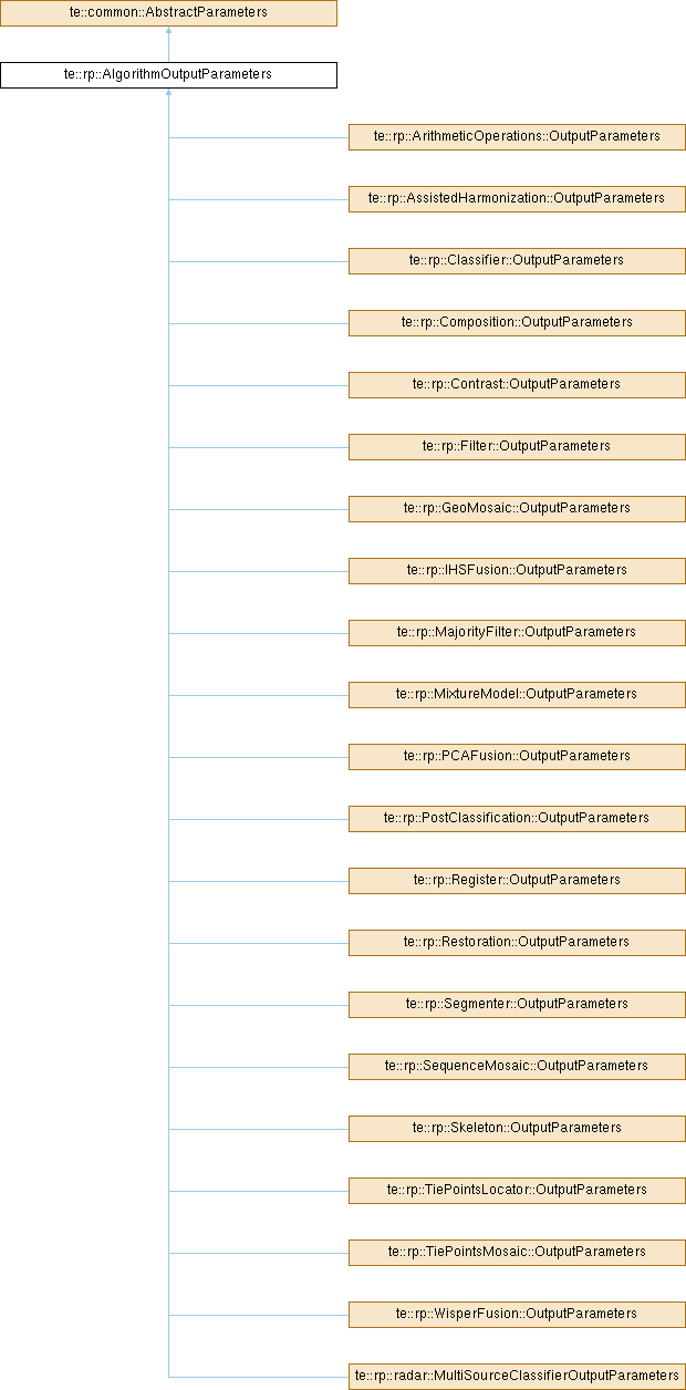 Implemented in te::cl::Dummy< TTRAIN, TCLASSIFY >::Parameters, te::cl::ISOData::Parameters, te::cl::KMeans< TTRAIN, TCLASSIFY >::Parameters, te::cl::MAP::ModelParameters, te::cl::MAP::Parameters, te::cl::MaxLikelihood::Parameters, te::gm::GTParameters, te::rp::ArithmeticOperations::InputParameters, te::rp::ArithmeticOperations::OutputParameters, te::rp::AssistedHarmonization::InputParameters, te::rp::AssistedHarmonization::OutputParameters, te::rp::Classifier::InputParameters, te::rp::Classifier::OutputParameters, te::rp::ClassifierDummyStrategy::Parameters, te::rp::ClassifierEDStrategy::Parameters, te::rp::ClassifierEMStrategy::Parameters, te::rp::ClassifierISODataStrategy::Parameters, te::rp::ClassifierISOSegStrategy::Parameters, te::rp::ClassifierKMeansStrategy::Parameters, te::rp::ClassifierMAPStrategy::OutputParameters, te::rp::ClassifierMAPStrategy::Parameters, te::rp::ClassifierMaxLikelihoodStrategy::Parameters, te::rp::ClassifierSAMStrategy::Parameters, te::rp::Composition::InputParameters, te::rp::Composition::OutputParameters, te::rp::Contrast::InputParameters, te::rp::Contrast::OutputParameters, te::rp::Filter::InputParameters, te::rp::Filter::OutputParameters, te::rp::GeoMosaic::InputParameters, te::rp::GeoMosaic::OutputParameters, te::rp::IHSFusion::InputParameters, te::rp::IHSFusion::OutputParameters, te::rp::MajorityFilter::InputParameters, te::rp::MajorityFilter::OutputParameters, te::rp::MixtureModel::InputParameters, te::rp::MixtureModel::OutputParameters, te::rp::MixtureModelLinearStrategy::Parameters, te::rp::MixtureModelPCAStrategy::Parameters, te::rp::PCAFusion::InputParameters, te::rp::PCAFusion::OutputParameters, te::rp::PostClassification::InputParameters, te::rp::PostClassification::OutputParameters, te::rp::radar::MultiSourceClassifierInputParameters, te::rp::radar::MultiSourceClassifierOutputParameters, te::rp::Register::InputParameters, te::rp::Register::OutputParameters, te::rp::Restoration::InputParameters, te::rp::Restoration::OutputParameters, te::rp::Segmenter::InputParameters, te::rp::Segmenter::OutputParameters, te::rp::SegmenterRegionGrowingBaatzStrategy::Parameters, te::rp::SegmenterRegionGrowingMeanStrategy::Parameters, te::rp::SequenceMosaic::InputParameters, te::rp::SequenceMosaic::OutputParameters, te::rp::Skeleton::InputParameters, te::rp::Skeleton::OutputParameters, te::rp::TiePointsLocator::OutputParameters, te::rp::TiePointsLocatorInputParameters, te::rp::TiePointsLocatorMoravecStrategy::Parameters, te::rp::TiePointsLocatorSURFStrategy::Parameters, te::rp::TiePointsMosaic::InputParameters, te::rp::TiePointsMosaic::OutputParameters, te::rp::WisperFusion::InputParameters, and te::rp::WisperFusion::OutputParameters.