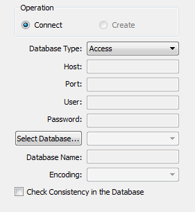 - Inform the connection parameters (Host, Port, User, Password) if the database type is not Access)