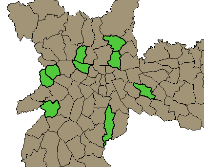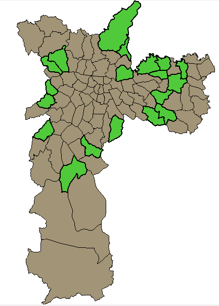 highlighted in green at the scatter plot, map display and table (only