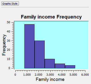 Chart Style interface is used to define some details related to the chart such as title, text font, axis labels, background color, among other properties. These properties can be edited once the chart has been created by clicking on Graphic Style button.  Also the inside part of the graphic, like bars in a histogram and points in a scatter plot,  can have its style changed.